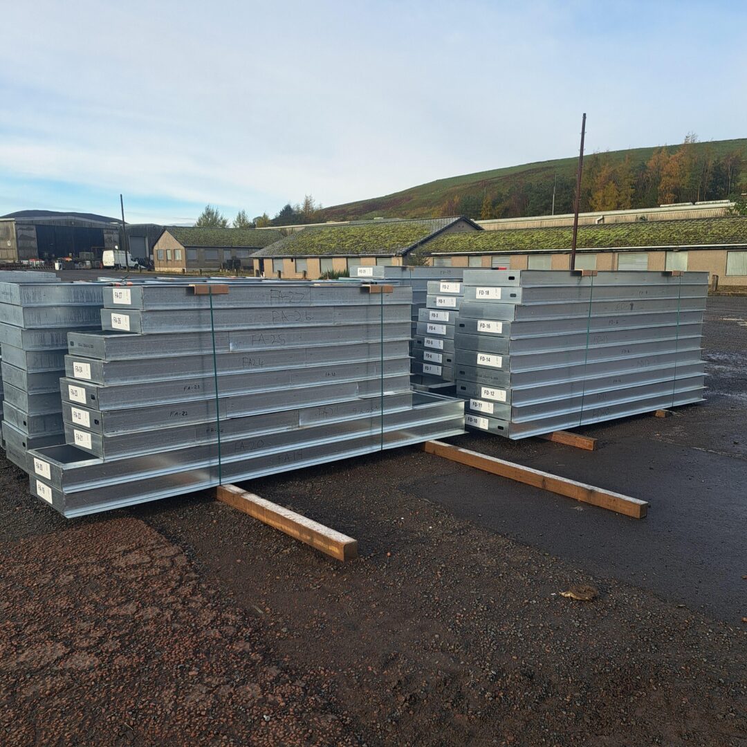 To streamline installation and minimise on-site work at height, parapets were sized precisely from detailed drawings and then manufactured and pre-assembled off-site. This work was carried out at our Glespin facility (south of Glasgow), where we could control quality and reduce the amount of cutting required on site.