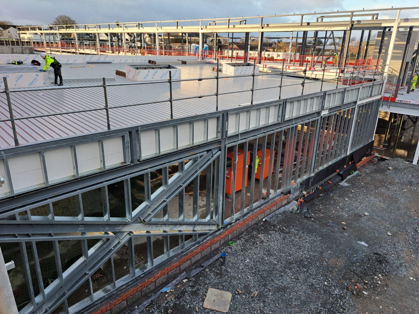 By combining programme-led infill SFS installation off-site parapet manufacture with factory pre-bonded membrane boards, the project delivered faster overall progress, created a safer working environment by reducing time and complexity on site, improved quality and consistency through controlled factory processes, and reduced waste and environmental impact by minimising on-site cutting and rework.